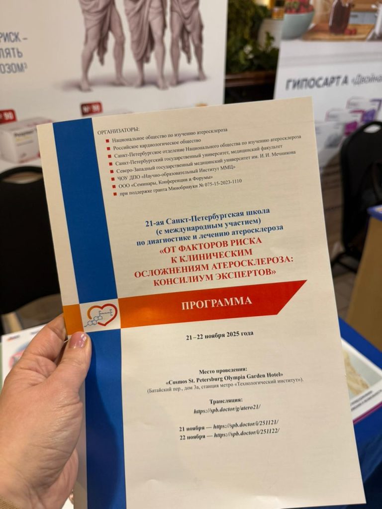 21–22 ноября 2025 года в Санкт‑Петербурге прошло мероприятие  21‑ой Санкт‑Петербургской школы по диагностике и лечению атеросклероза (с международным участием).