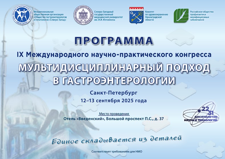 Тезисы докладов будут опубликованы в журнале «Гастроэнтерология Санкт‑Петербурга»