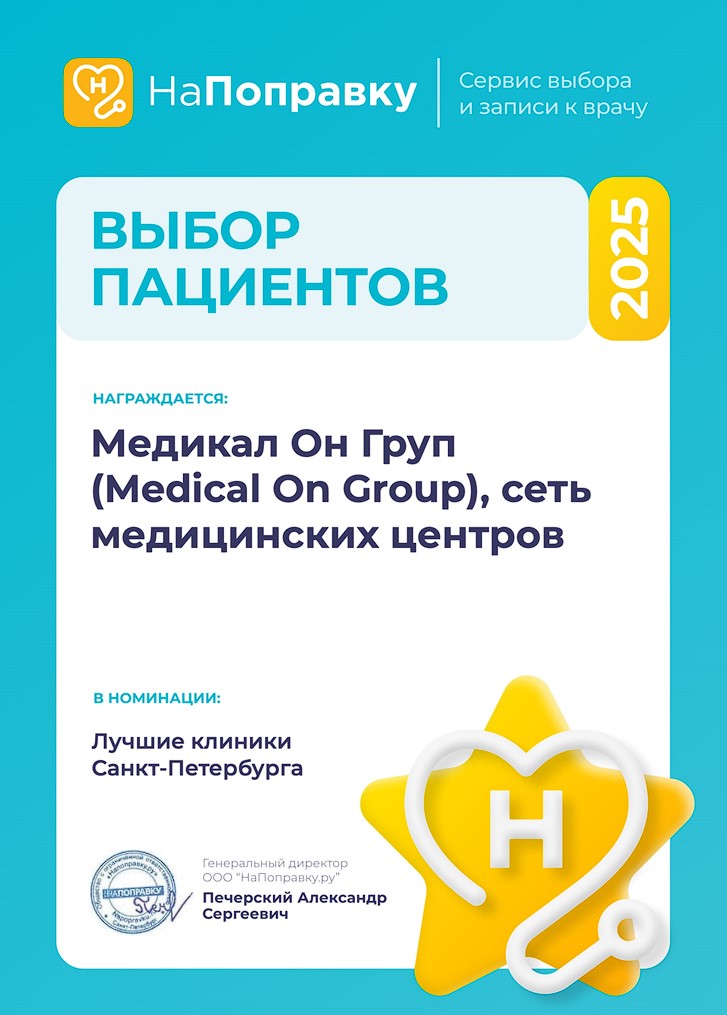 Коллектив медицинского центра «Медикал Он Груп» с гордостью сообщает: наши специалисты стали лауреатами престижной премии «Выбор пациентов — 2025».